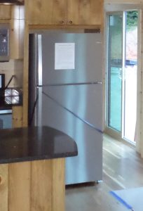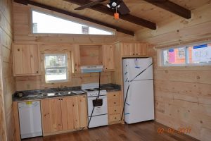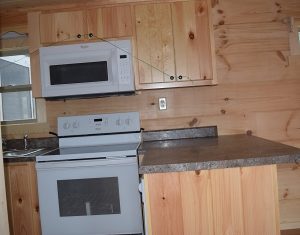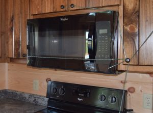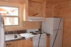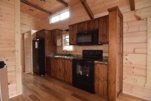 Our Log Cabins are complete with full size kitchens! All appliances are available in a variety of finishes: White, black and stainless steel.